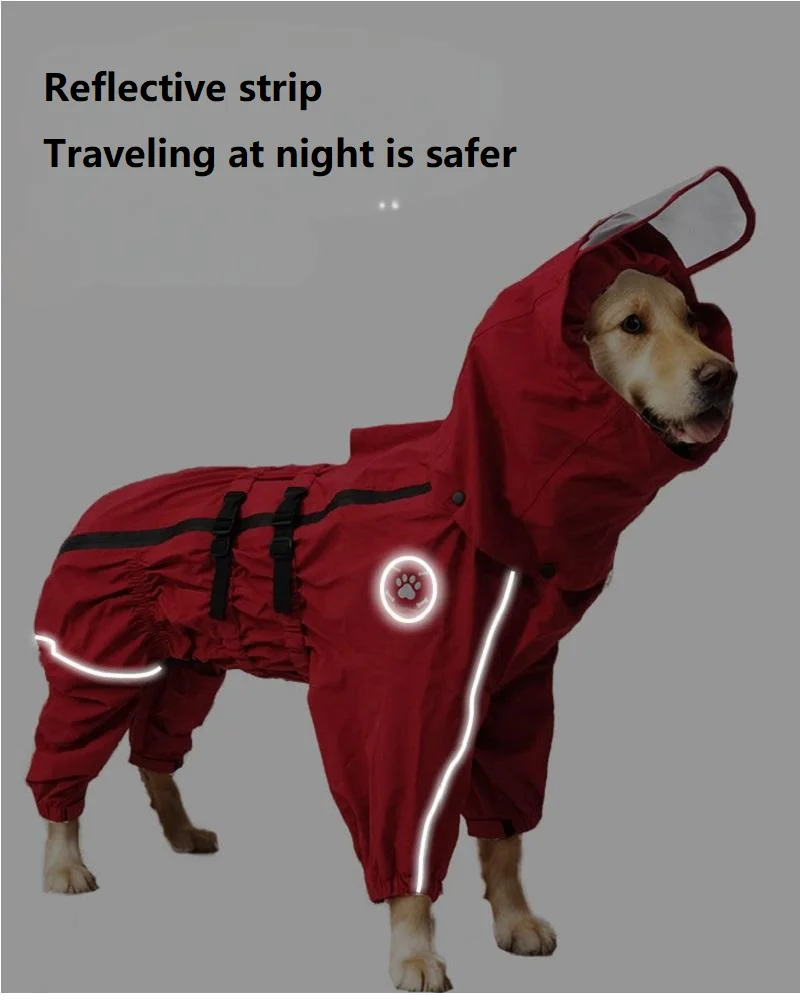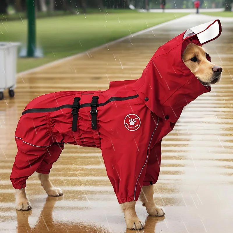 Waterproof raincoat and jacket with hood for pet dogs, suitable for medium and large breeds, wearable all year round