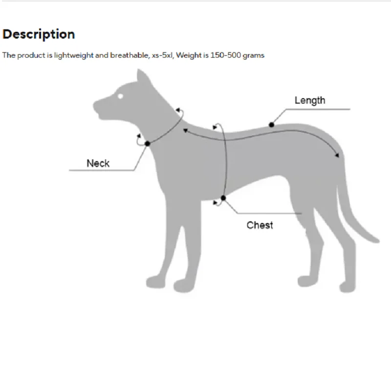 2. Four legs clothes will be subject to the back length and chest girth;